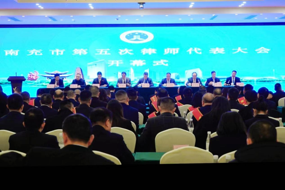 2024年1月26日,南充市第五届律师代表大会在南充北湖宾馆召开。南充市人民政府副市长、市公安局局长岳剑出席会议并讲话,省律师协会副会长王坤林致辞,南充市司法局党委书记、局长付爱民主持开幕式,市司法局党委委员、副局长余新平主持闭幕式。市司法局主要领导和辖区司法局主要领导、分管领导、律师管理股室负责人,律师行业正式代表等共计180余人参加会议。