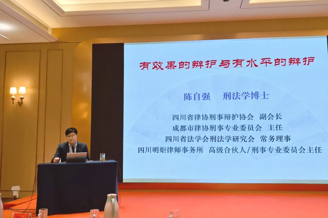 2024年12月14日,应眉山市律师协会邀请,明炬高级合伙人、刑事专业委员会主任陈自强为眉山市律协2024年业务培训会授课。市律协副会长李燕红到会指导并讲话,市律协刑事专业委员会秘书游翀主持培训会。共计70余名眉山律师参加了培训。