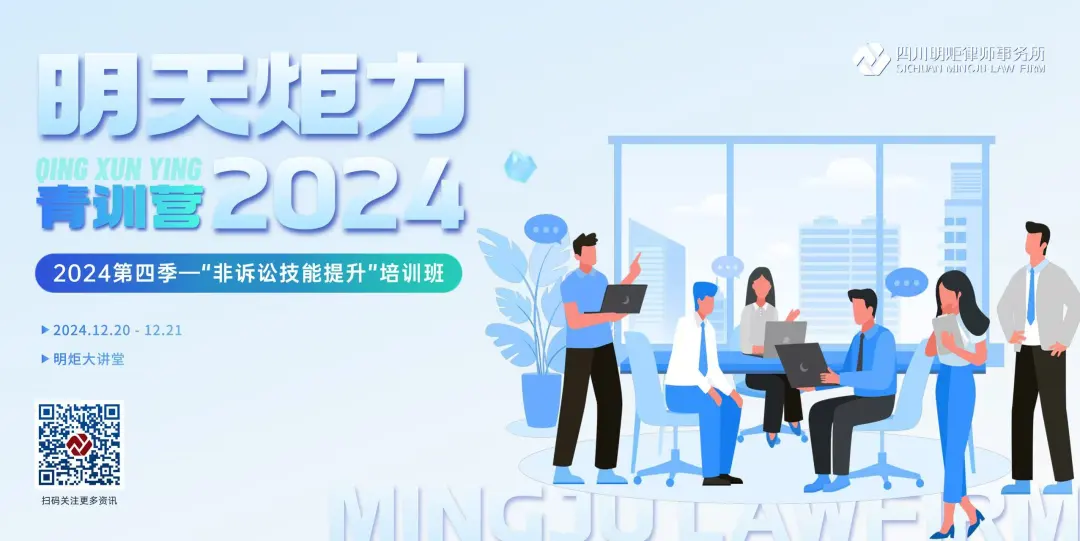 为进一步提升青年律师的非诉讼业务技能,2024年12月20日至21日,明炬为期两天的“明天炬力青训营”2024第四季——非诉讼技能提升培训班成功举办。明炬资深合伙人不仅带来了多年积累的宝贵经验,还分享了他们深厚的专业知识。在他们的引导下,青年律师们得以深入探讨法律的精髓,学习如何在实际工作中运用法律知识,解决复杂案件。培训现场气氛热烈,青年律师们积极提问,资深律师们耐心解答,共同营造了一场知识的盛宴。