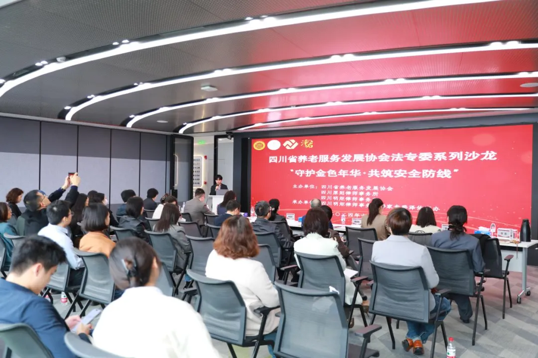 2024年11月14日,四川省养老服务发展协会、四川明炬律师事务所、四川原则律师事务所联合举办的“守护金色年华·共筑安全防线”沙龙活动圆满完成。本次活动吸引了众多法律界精英、养老机构以及对保险感兴趣的各界人士积极参与,由明炬婚家委秘书唐益玄担任主持。