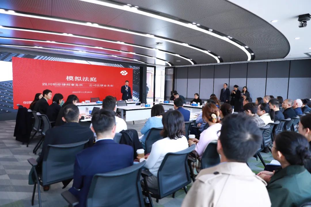 2023年11月29日,公司法律业务部举办的模拟法庭活动圆满举行。公司法律业务部于2023年10月中旬开始筹备模拟法庭活动,活动公告一经发出,律师积极响应,因参赛人数较多,故本次活动分为两组同时进行模拟法庭活动。本次活动特别邀请到管委会委员李洪斌,监事会监事毛政文,执委会委员霍子诗、罗巧,房建部部长邱万兵,以及公司法律业务部部长谢惠芬担任评委。还邀请了何亚林、宋海坤、谢丹、张浩、郝晓兰、陈双律师担任合议庭成员,公司法律业务部副部长张浩担任主持人。航天工业部下属单位法务团队旁听了本次模拟法庭活动。