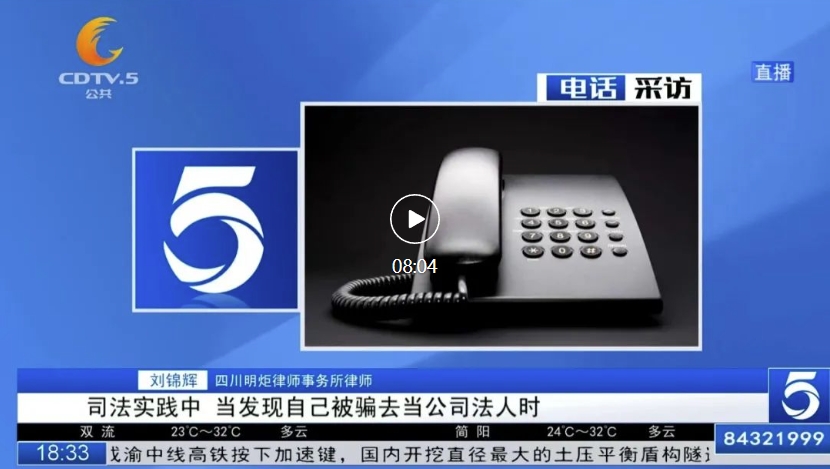 2023年9月11日,明炬刘锦辉律师接受成都市广播电视台《成都全接触》节目的电话采访,就某纠纷中公司法定代表人的法律风险问题发表了专业看法,向观众们普及了相关法律知识。