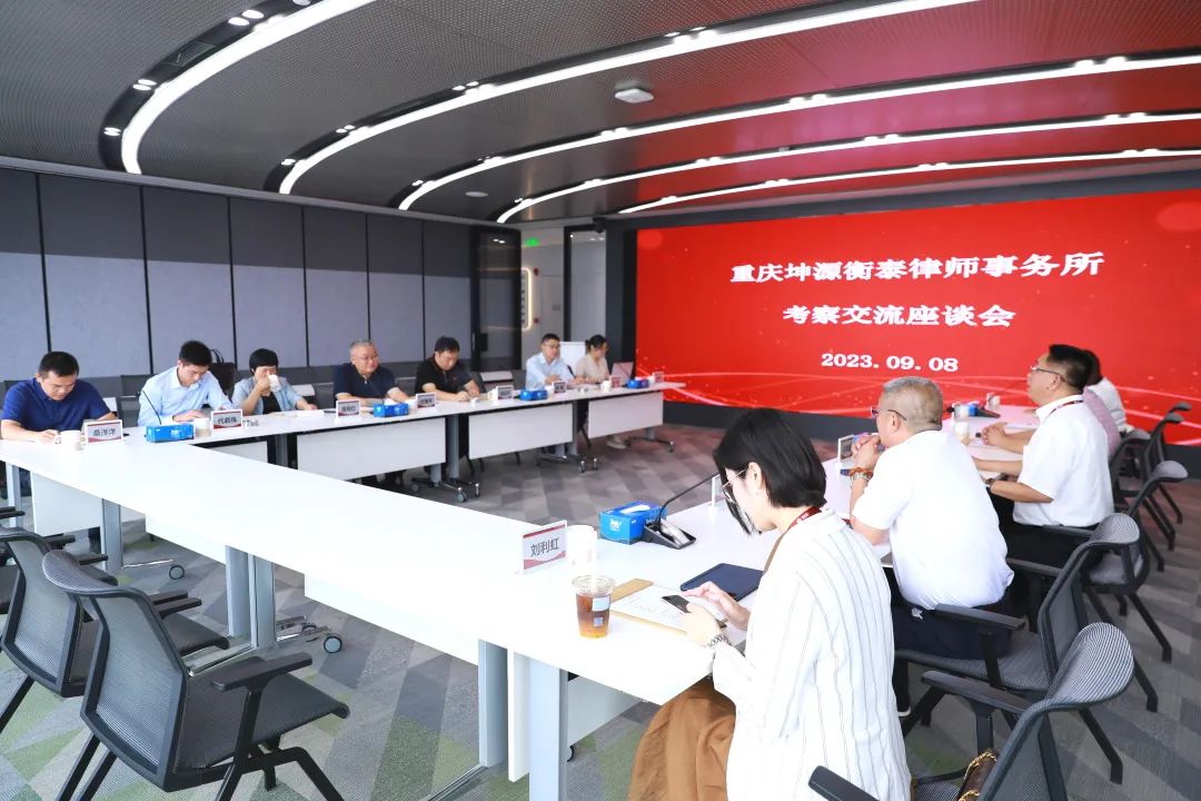 为加强成渝两地律界交流合作,助力双城经济圈建设,2023年9月8日下午,重庆坤源衡泰律师事务所管委会主任付海平一行到访明炬参观交流。明炬党委书记、主任王宗旗热情接待,陪同参观了明炬方舟、大讲堂、党员活动室、模拟法庭等区域。