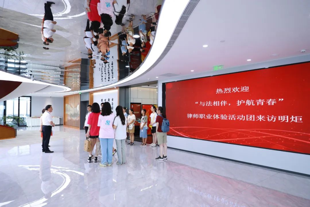 2023年8月11日,明炬开展了以“与法相伴,护航青春”为主题的律师职业分享会,活动邀请了二十余名本市高三学生及家长参加,明炬高级合伙人、党委副书记颜波热情接待。颜波带领大家参观了明炬方舟、党员活动室、5G庭审室、模拟法庭、文化展示区等地,并对各区域功能布局、设计理念、明炬文化元素和律所发展规划分别作了详细介绍。