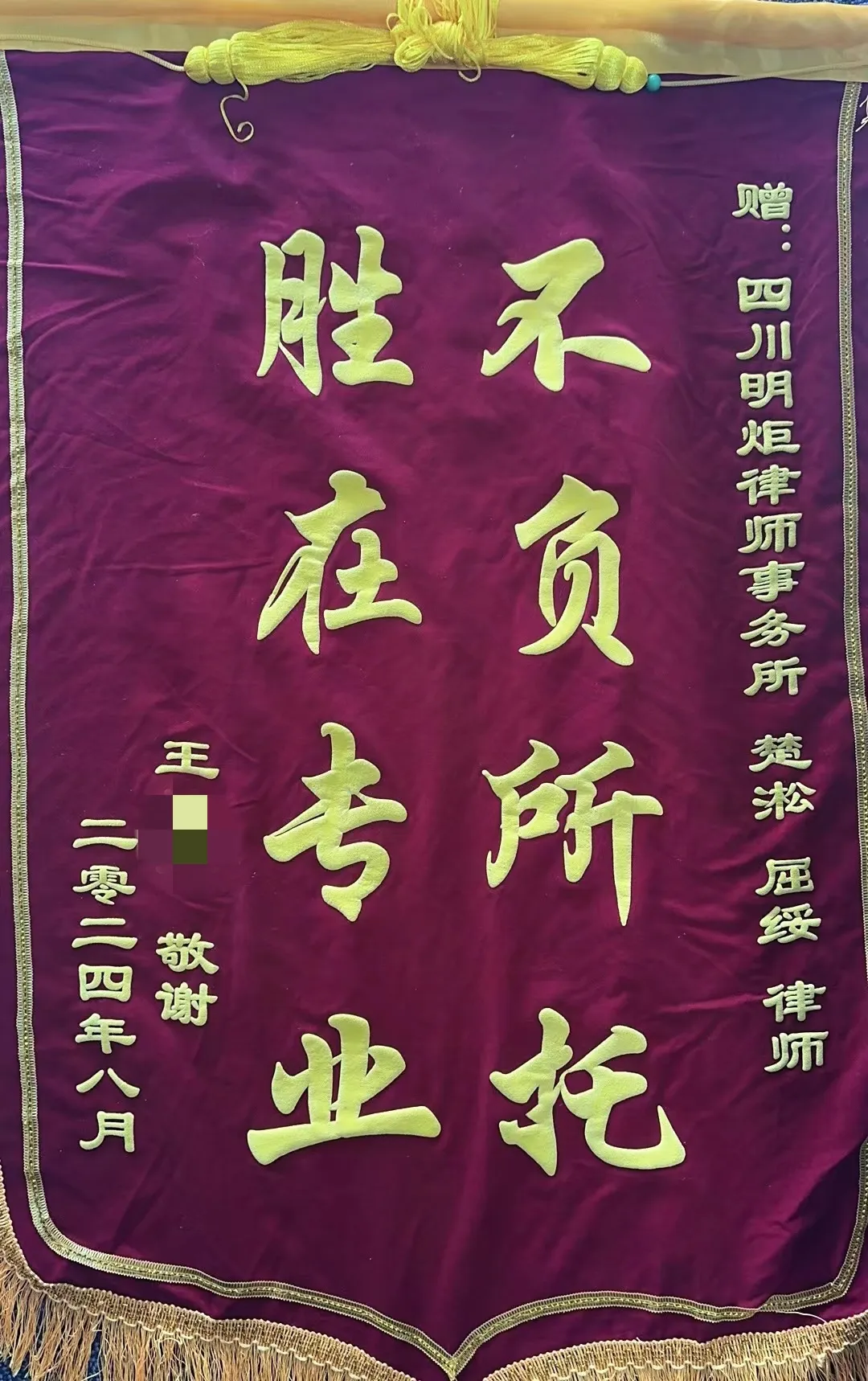 明炬楚淞、屈绥律师获当事人赠送锦旗