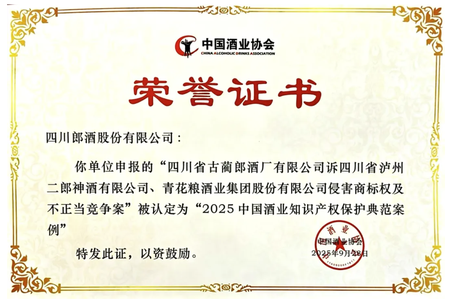 护航郎酒维权!明炬律师代理案件获评“2025中国酒业知识产权保护典范案例”