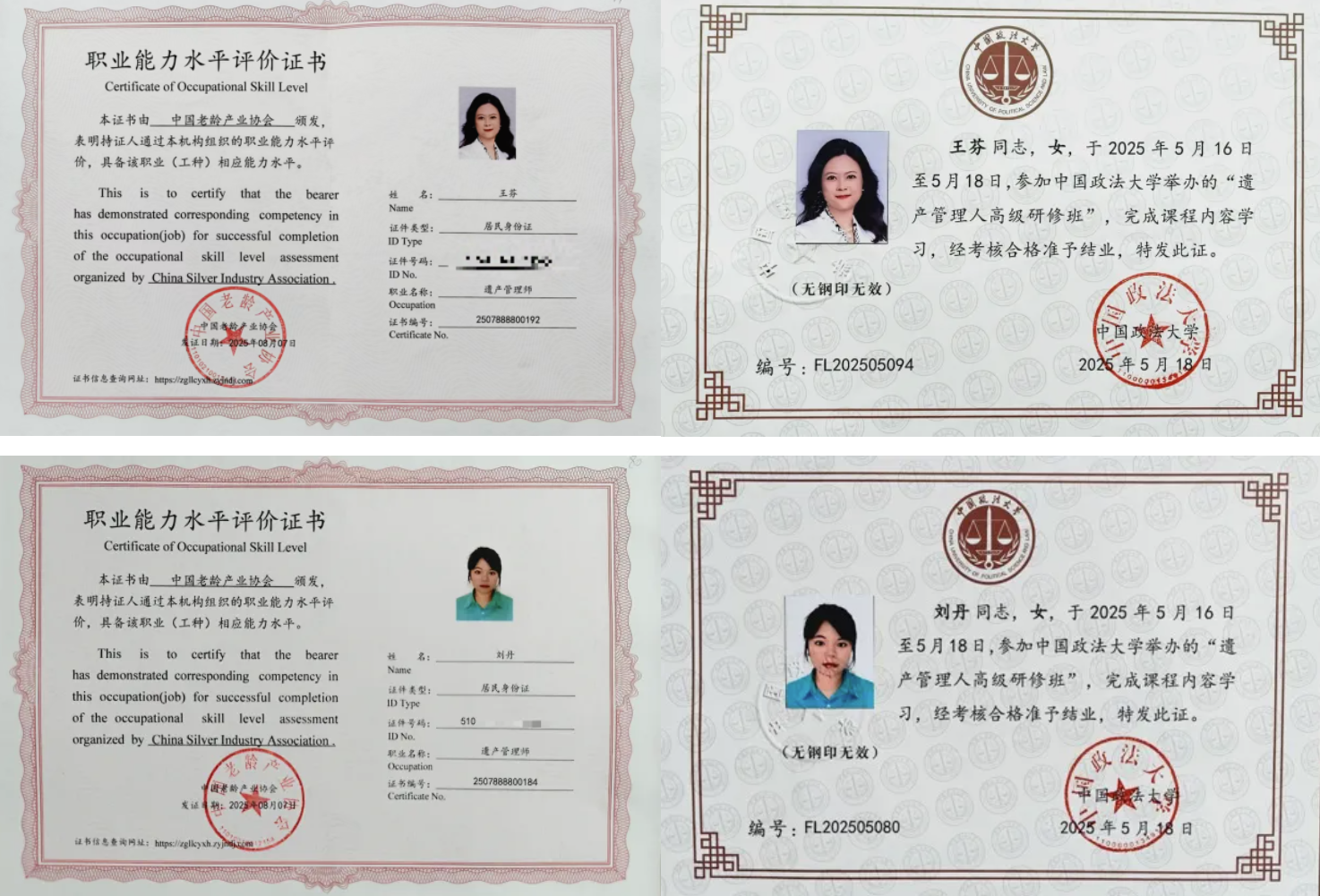 王芬、刘丹律师获“遗产管理师”资质认证