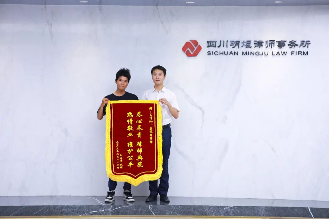 明炬高级合伙人胡基洋、律师唐红琴获当事人赠送锦旗