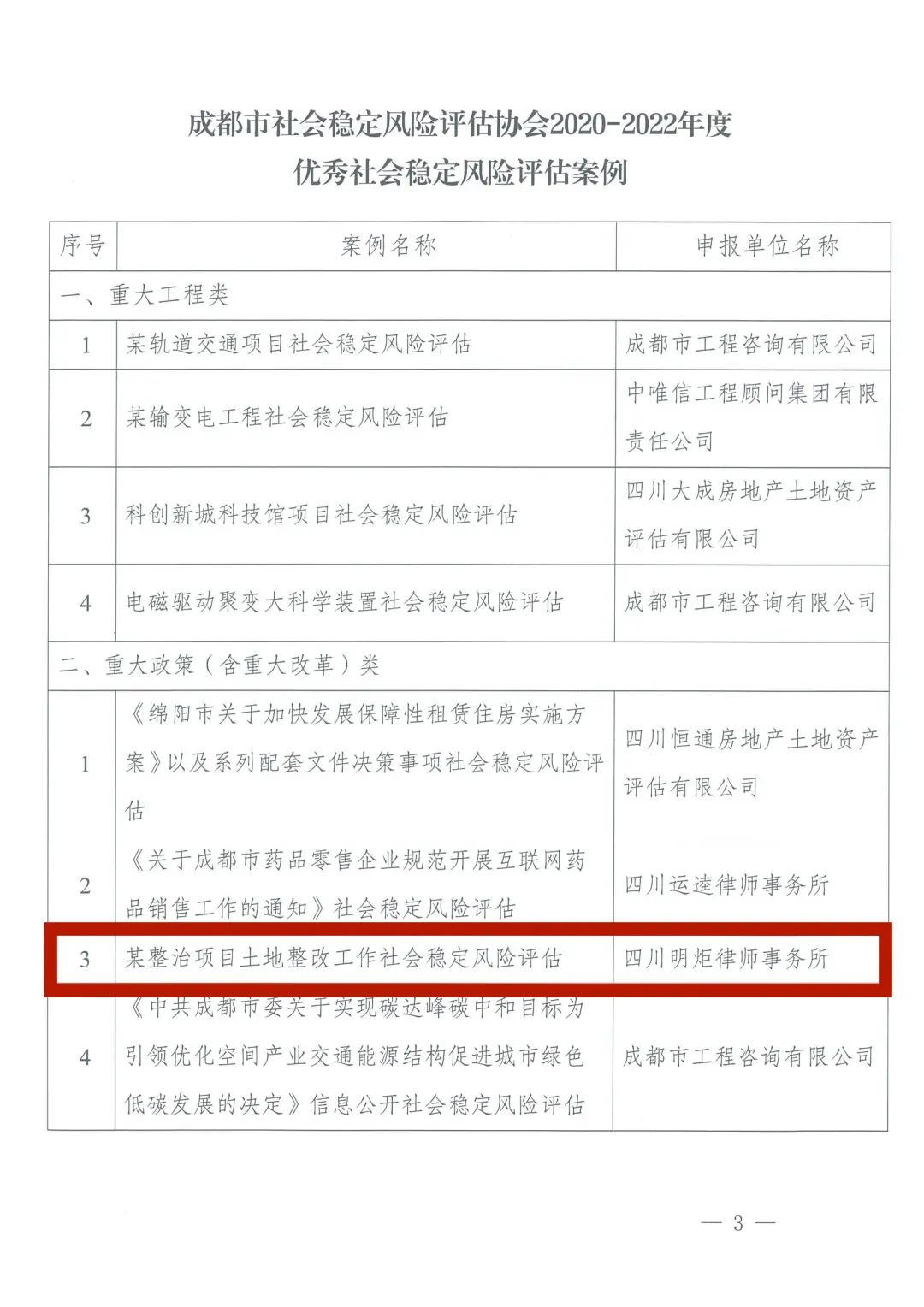 明炬申报案例入选2020-2022年度优秀社会稳定风险评估案例