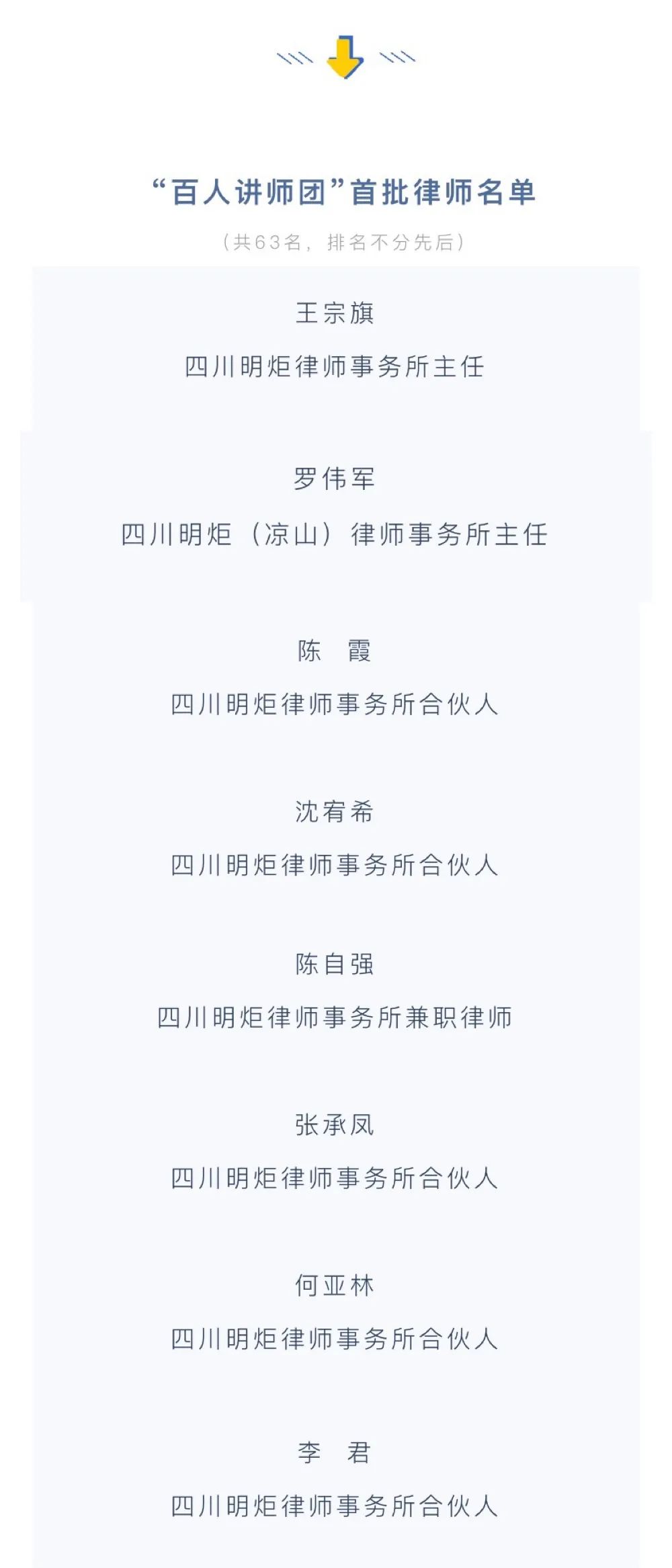 关注!“百人讲师团”首批讲师名单公布,明炬8名律师位列其中